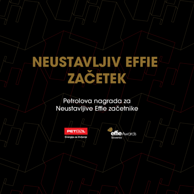 Effie Slovenija v sodelovanju s Petrolom predstavlja posebno nagrado Neustavljiv Effie začetek, namenjeno vsem, ki šele vstopajo v svet Effie nagrad ali se po daljšem premoru znova vračajo v tekmo.