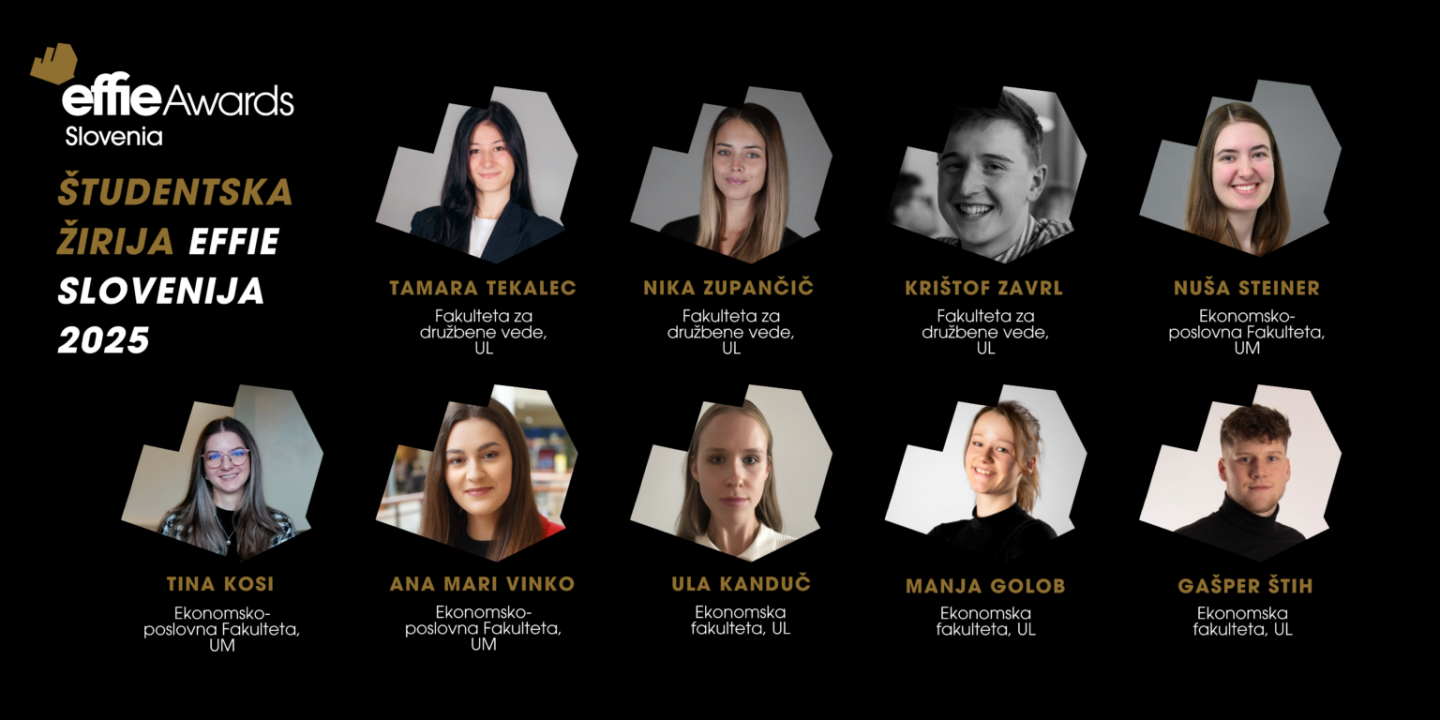 Tudi letos smo v žiriranje Effie vključili nadobudne študente, ki so tako dobili dragocen vpogled v delo žirije Effie. Kot edini Effie program, Slovenija že tretje leto zapored kot edini program na svetu organizira študentsko žiriranje v enakem postopku, kot poteka žiriranje prvo- in drugostopenjske žirije.
