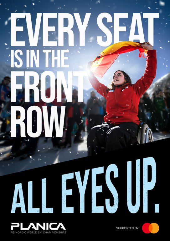 Normally, at events of any kind people compete for the best possible spot for themselves. However, at the Ski Jumping World Cup in Planica every seat is the best seat, because everyone is looking up. From here comes the main slogan of our campaign – All Eyes Up. It not only highlights our core insight but also reflects the essence of ski jumping: the most important and emotional part of the act is not the beginning or the landing of the jump, but the time the sportsman is in the air, when the entire crowd’s gaze is lifted skyward. In those moments the hill falls silent, breaths are held, and every eye follows the jumper gliding through the open air. What makes ski jumping so extraordinary is that these seconds are shared equally by everyone present, no matter where they stand or who they are. To bring this to life, we designed three posters that explore everyday situations from such events – trying to reach the front row, struggling to see because someone taller is in front of you, or simply feeling that you’re not in the right spot. But here, these usual barriers lose their weight, since all eyes are equally drawn upward. Wherever you are—at the side, deep in the crowd, or far behind—the view is equally clear, and the emotion is shared by all. Through the characters we present – families, youths, and other fans from different backgrounds and beliefs – we indirectly communicate Mastercard’s corporate values. Diversity, togetherness, and accessibility are expressed not through slogans but through relatable human moments, showing how the brand’s principles naturally live within the experience of the event itself.